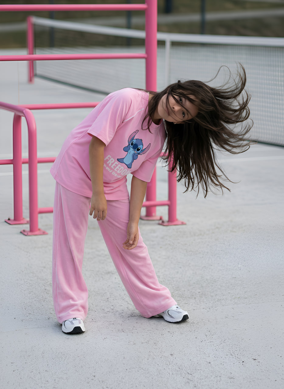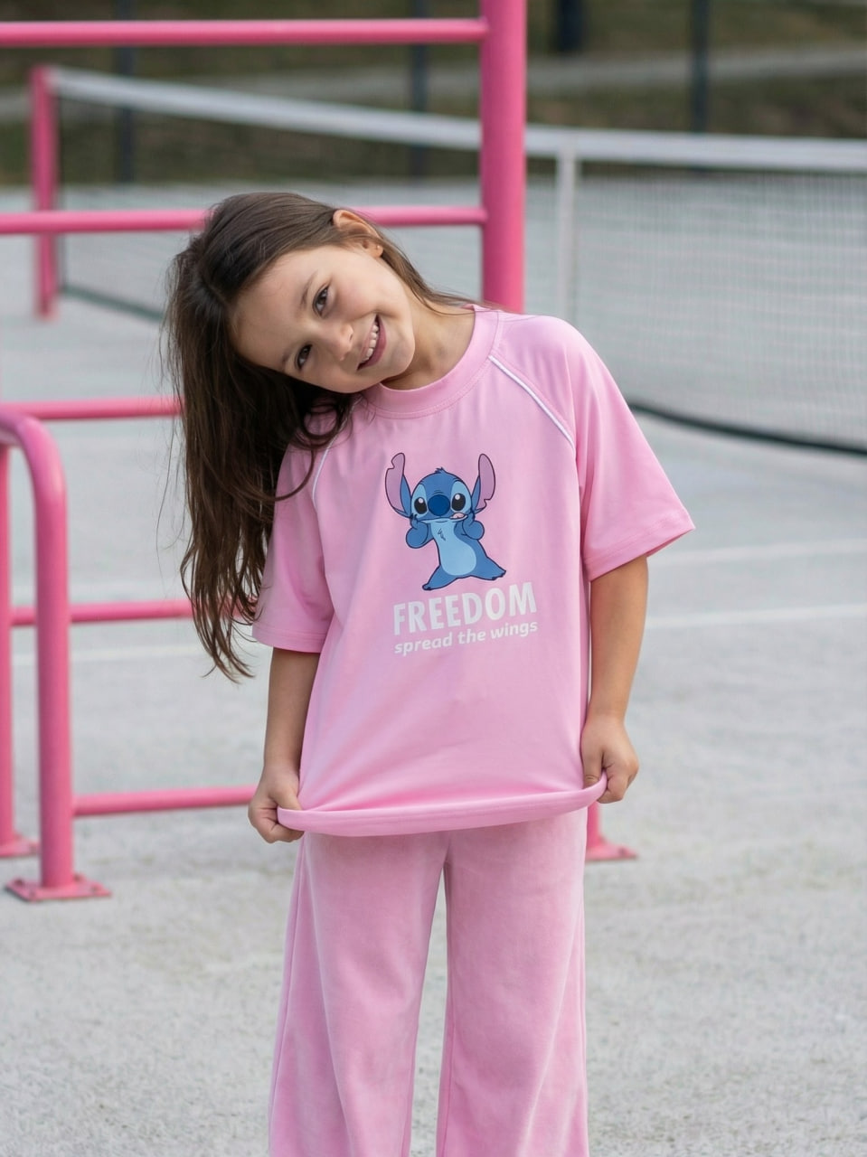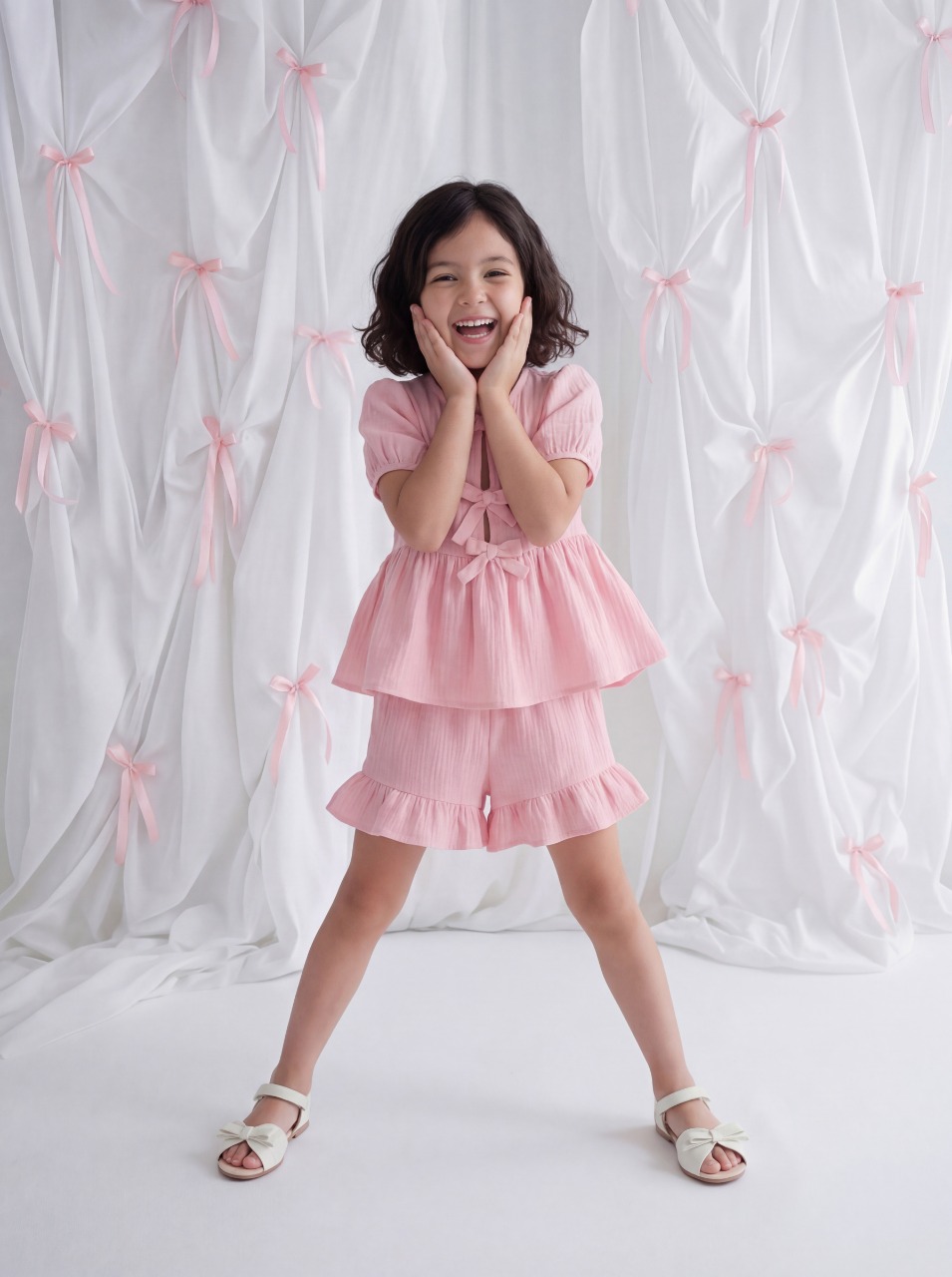 Ніжний рожевий колір робить комплект універсальним і стильним – для прогулянок, відпочинку чи особливих моментів.